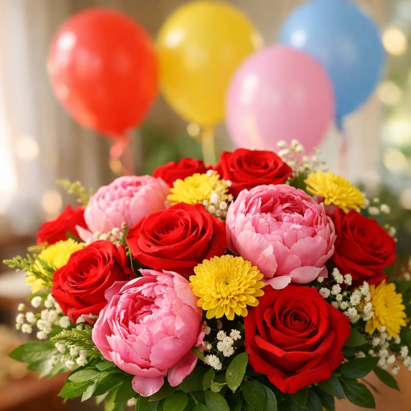 Для женщин — розы (25 или 51 штука), пионы, эустомы. Для мужчин — строгие предложения с ирисами, хризантемами или экзотическими цветами. Если не уверены — напишите нам, флорист составит уникальный комплимент под бюджет и предпочтения именинника.